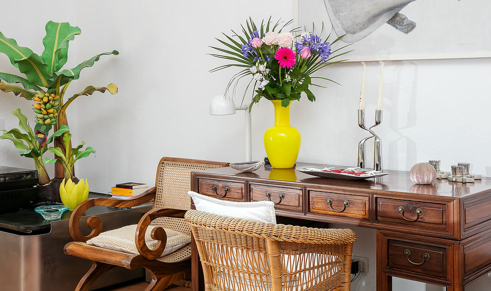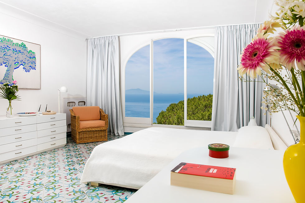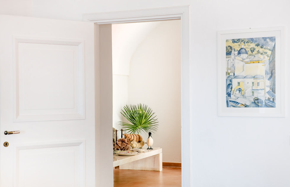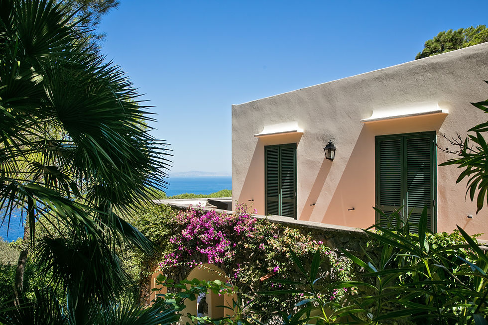 The overall feel of Villa Douglas can be described as that of an unconstrained flow, where light and air alike move freely through the large white arches and the tall french windows. Every room overlooks the garden and sea, and is decorated with lightly coloured furniture and artwork that compliment the natural hues that pore in through the vast windows.